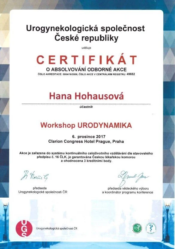 Hana Hohausová se v Centru Pánevního Dna dlouhododobě věnuje ambulantní sesterské péči o pánevní dno. Je držitelkou odborného certifikátu k vykonávání urodynamického vyšeření. V našem centru provádí rovněž výplachovou terapii močového měchýře a kvantifikaci kvality života pomocí mezinárodních validovaných dotazníků.