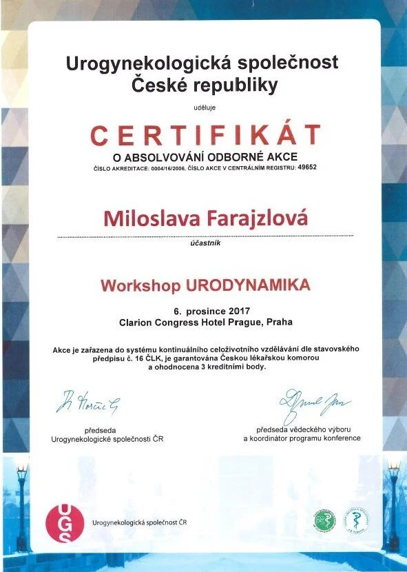Miloslava Farajzlová se v Centru Pánevního Dna dlouhododobě věnuje ambulantní sesterské péči o pánevní dno. Je držitelkou odborného certifikátu k vykonávání urodynamického vyšeření. V našem centru provádí rovněž výplachovou terapii močového měchýře a kvantifikaci kvality života pomocí mezinárodních validovaných dotazníků.